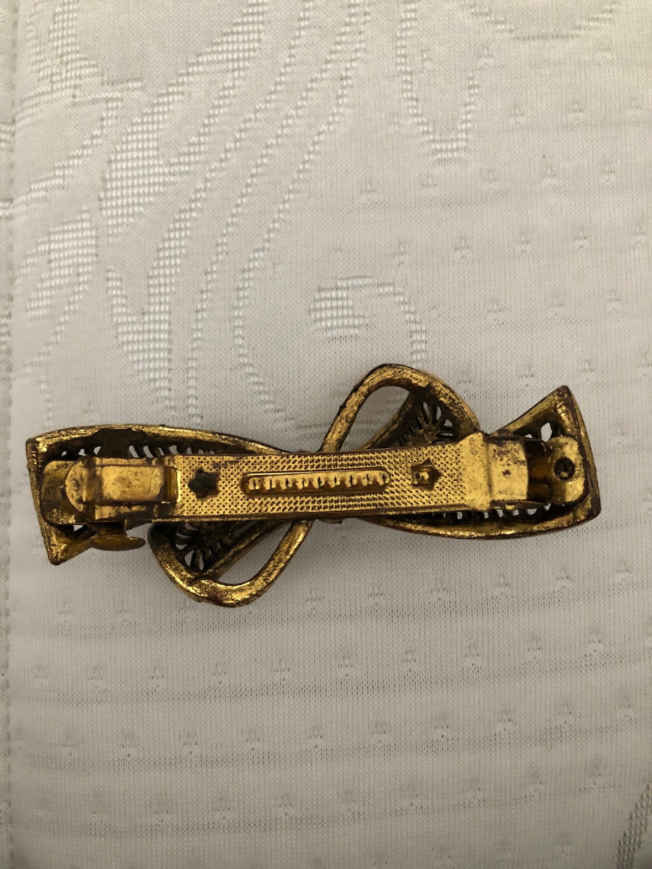 【商品説明】 : アンティークゴールドの金属リボンフレームに、キラキラとライトストーンが、輝いています。
