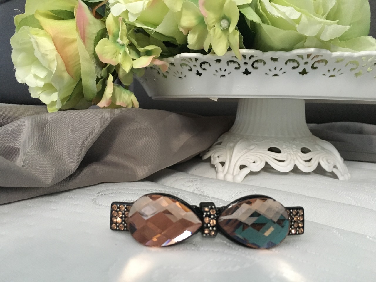 【素材】 :ビジュ(アンチークブラウン)、ライトストーン(ホワイト)、金具(シルバー)