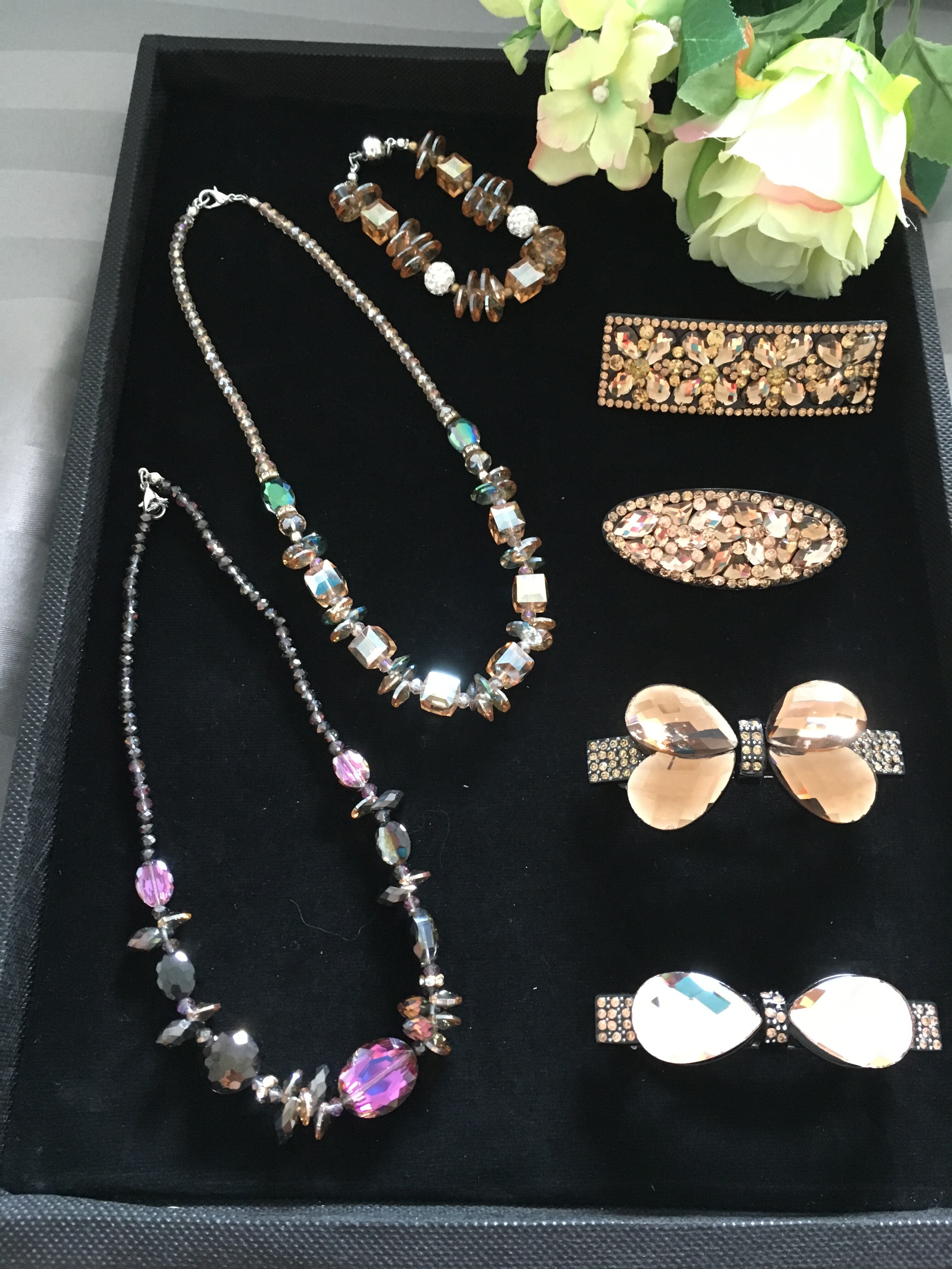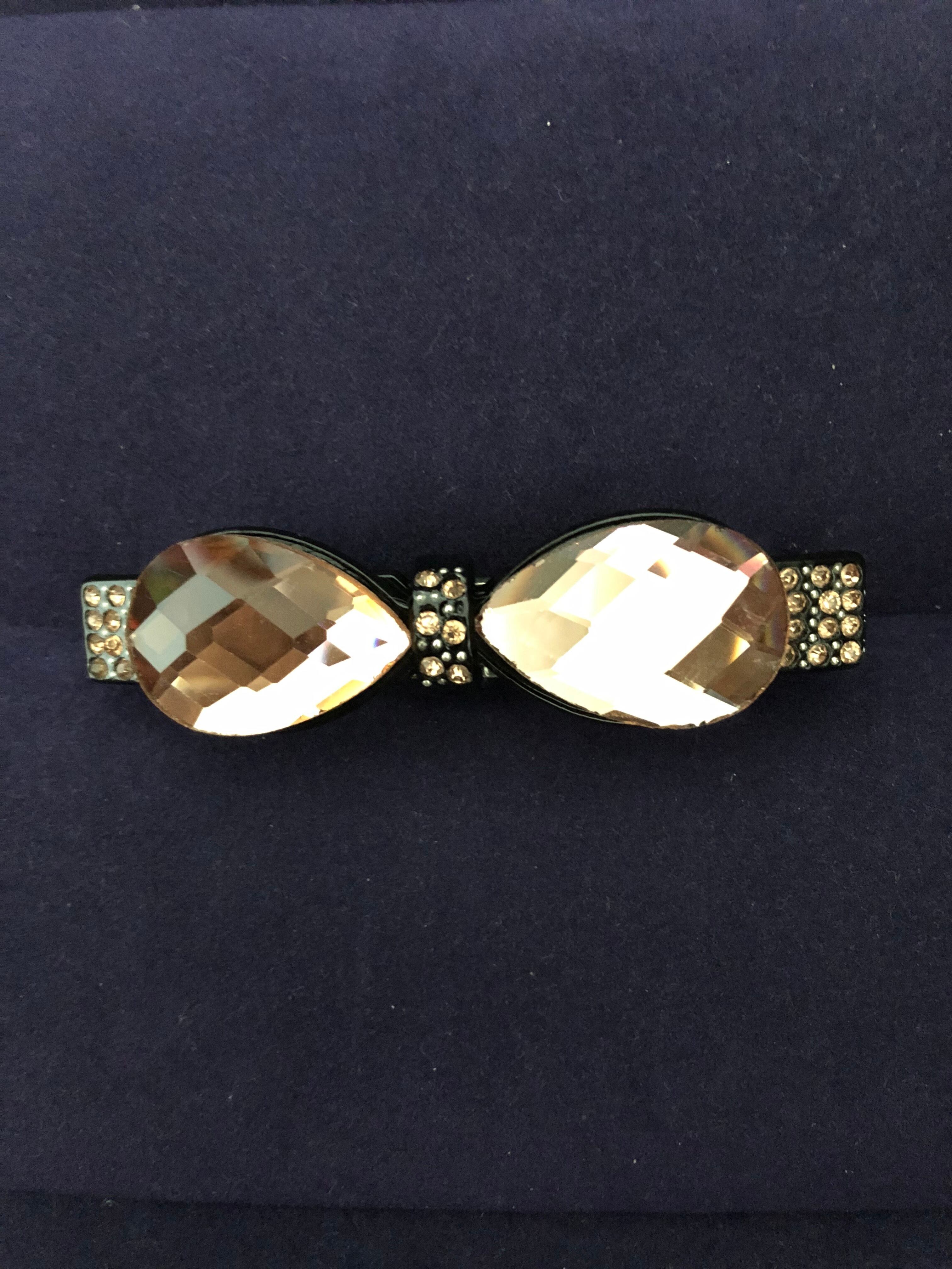 【商品説明】 : とても華やかで存在感のある、けれども上品さをたたえたバレッタです♡グラマラスな大人の華やかさを演出してくれるキラキラバレッタ。結婚式の二次会やカジュアルなパーティーシーンにオススメです♪普段使いやオフィスでは1つ使いしたりと多彩なシーンに活躍します♪