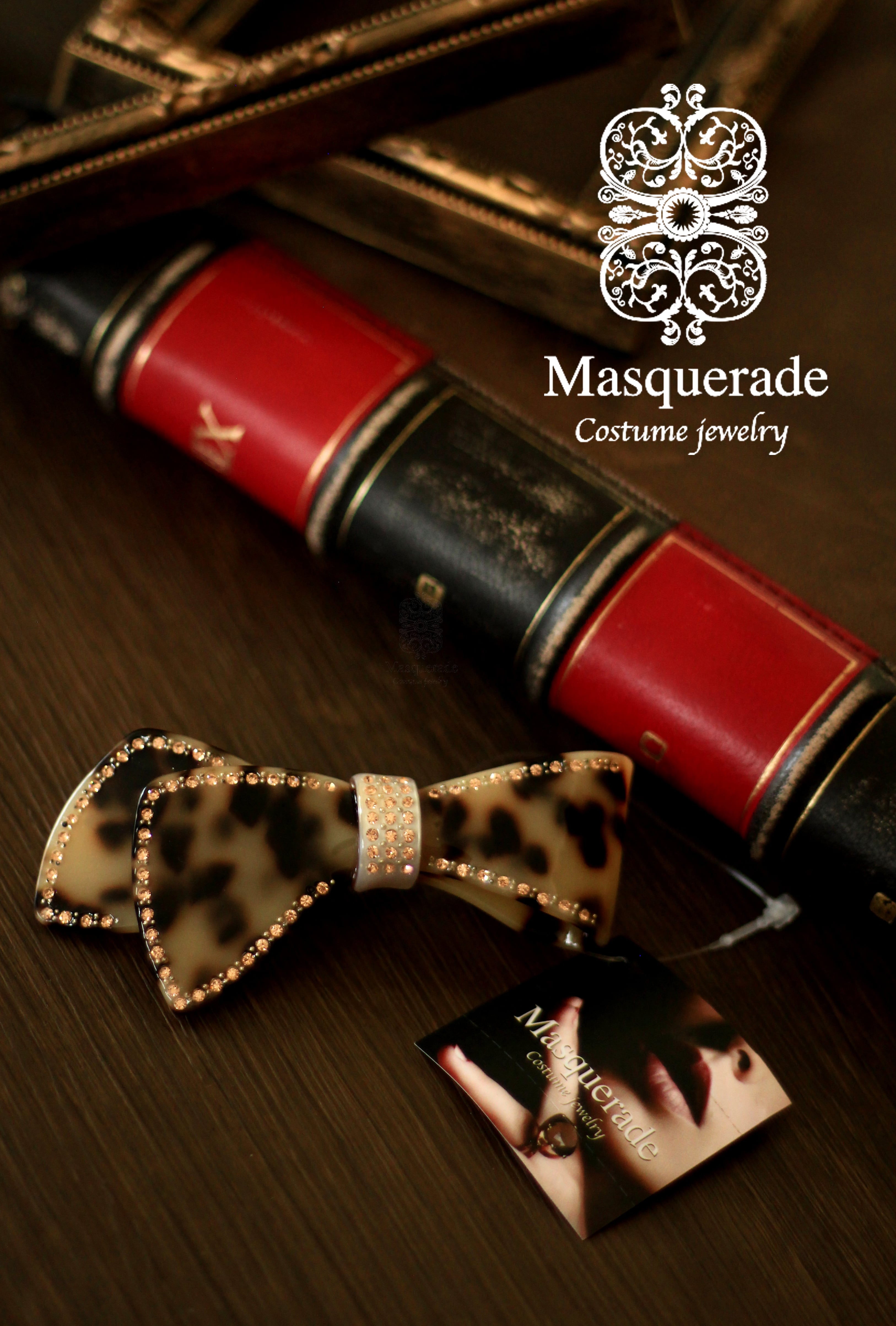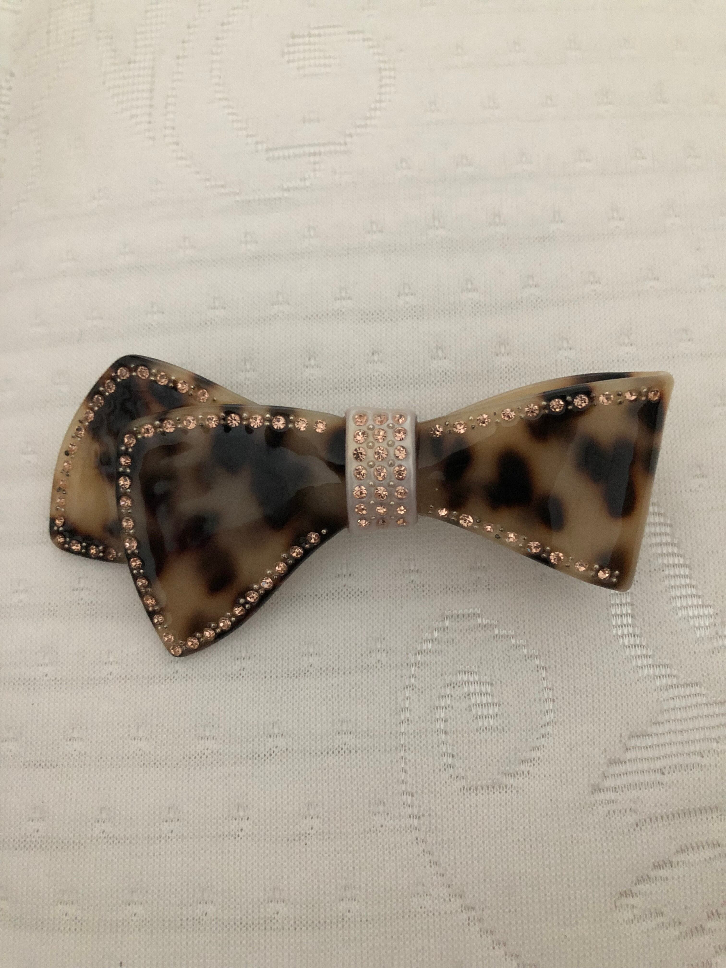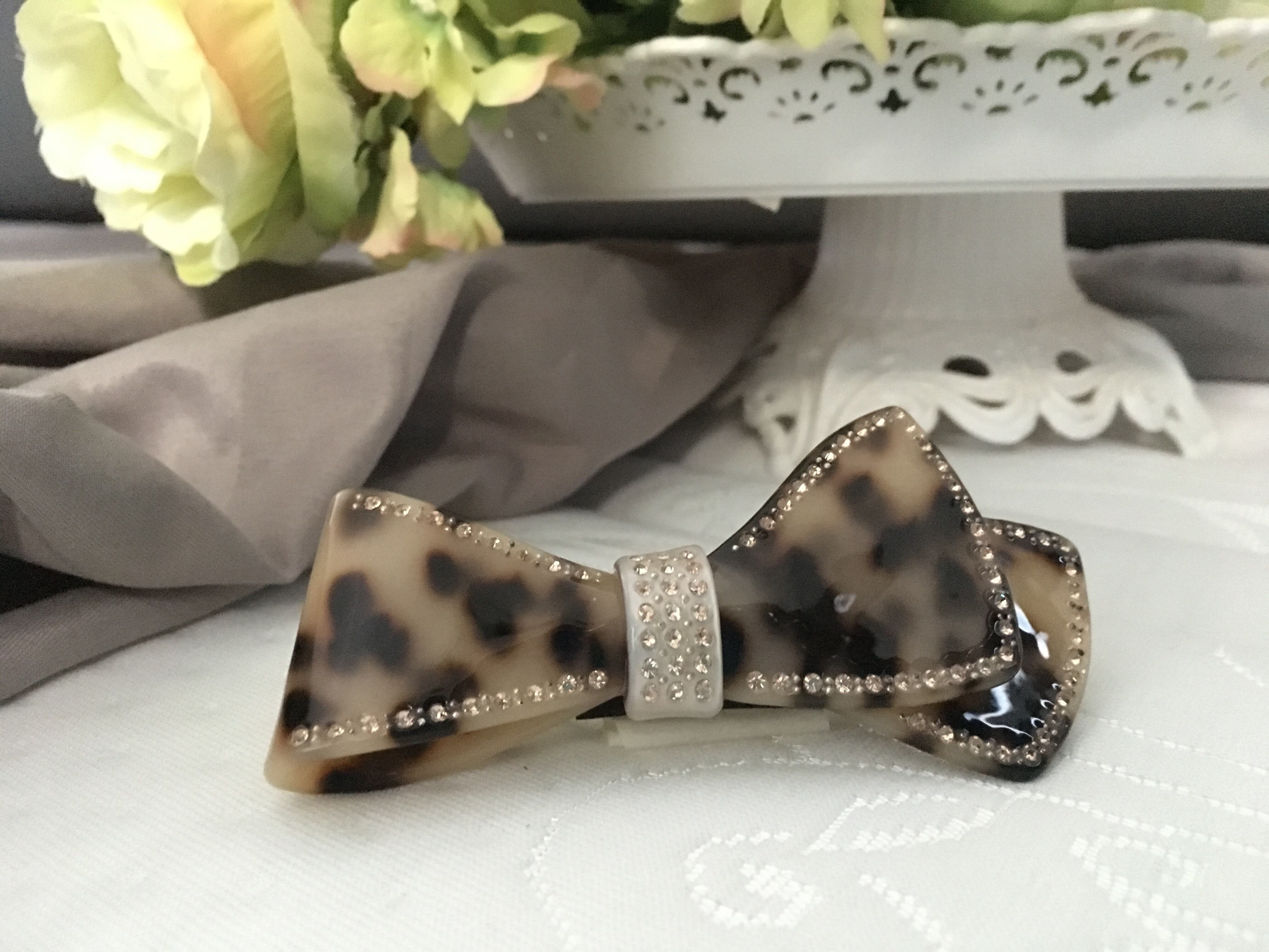 柔らかい雰囲気を演出。周囲にライトストーンを配した可愛いらしいリボンモチーフで、留めるだけで女性の魅力がUP!