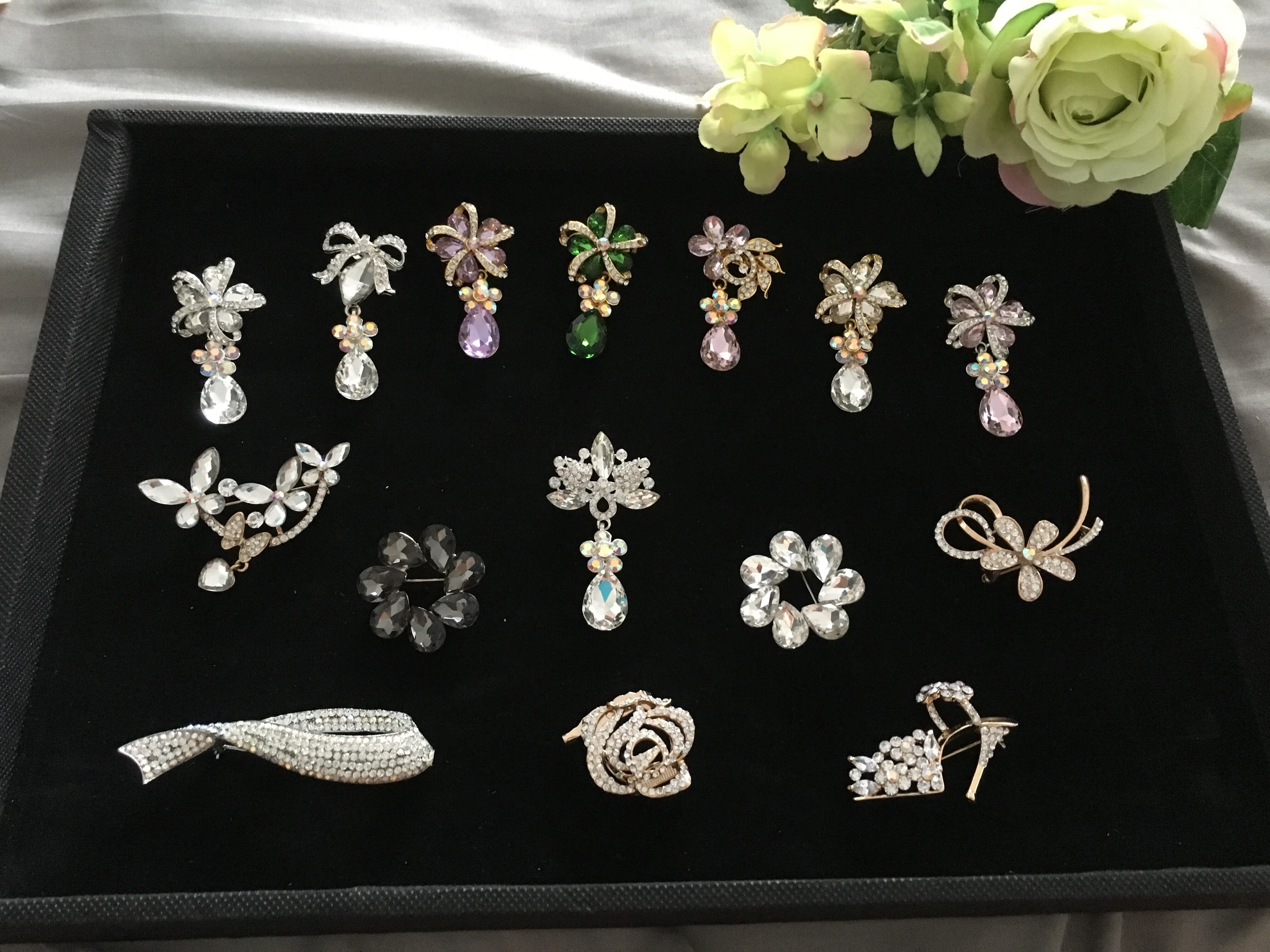 【商品説明】 : キラキラ輝くビジューブローチです。ラインストーンがゴージャスに演出してくれるキラキラオシャレなブローチ♪パーティー・二次会・入卒式などのイベントやフォーマルスタイルなど多彩なシーンで使えちゃう☆もちろん普段コーデのアクセントとしても相性バッチシ♪!!これ1つでグっと雰囲気が変わりますね。大切な人へのプレゼントにもオススメ♪