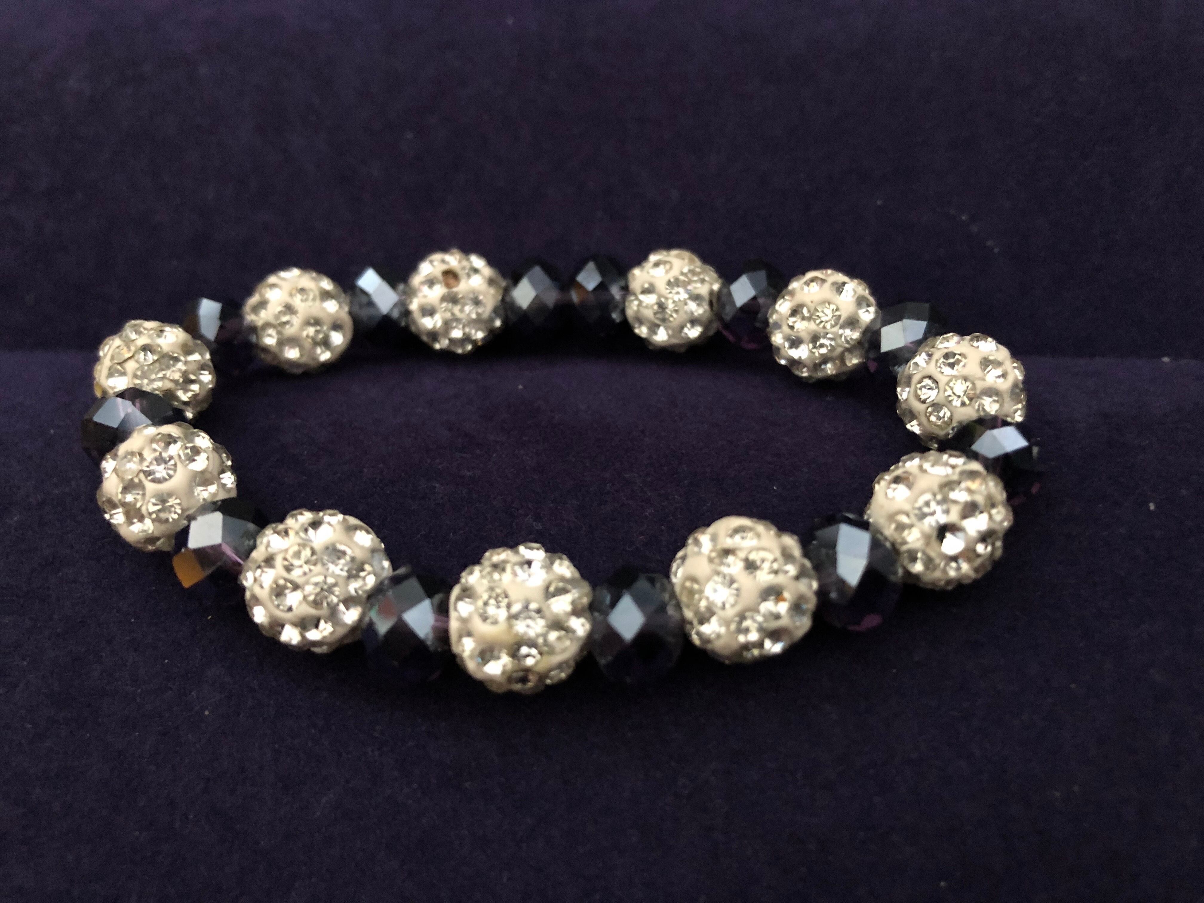 【商品説明】 : ラインストーンが美しく煌めくシンプルデザイン。涼やかな色合いのラインストーンブレスレット。カジュアルからエレガントまで幅広い装いに合わせていただける素敵なブレスレットです。様々な表情のラインストーンたちが麗しいハーモニーを奏でます。