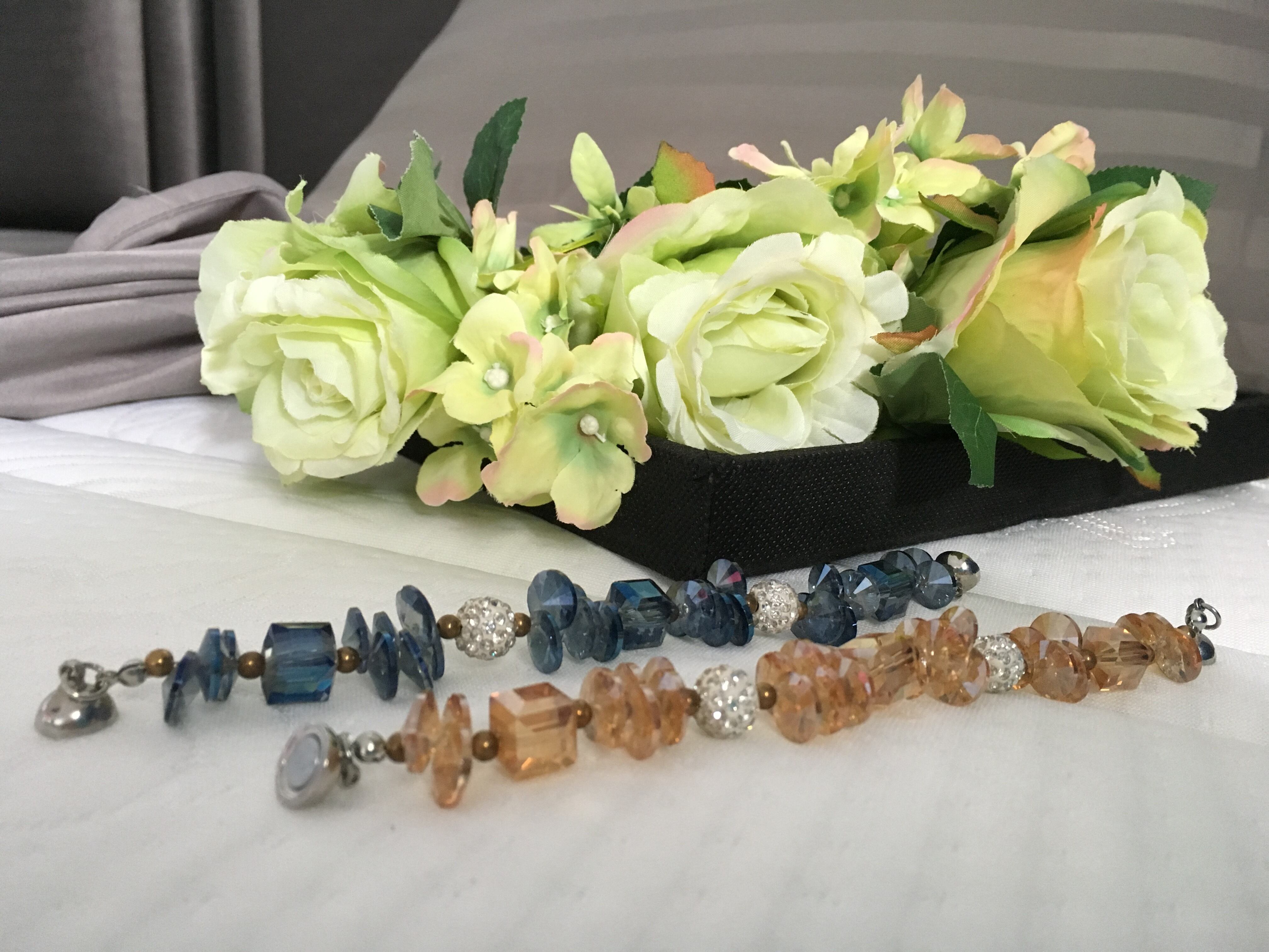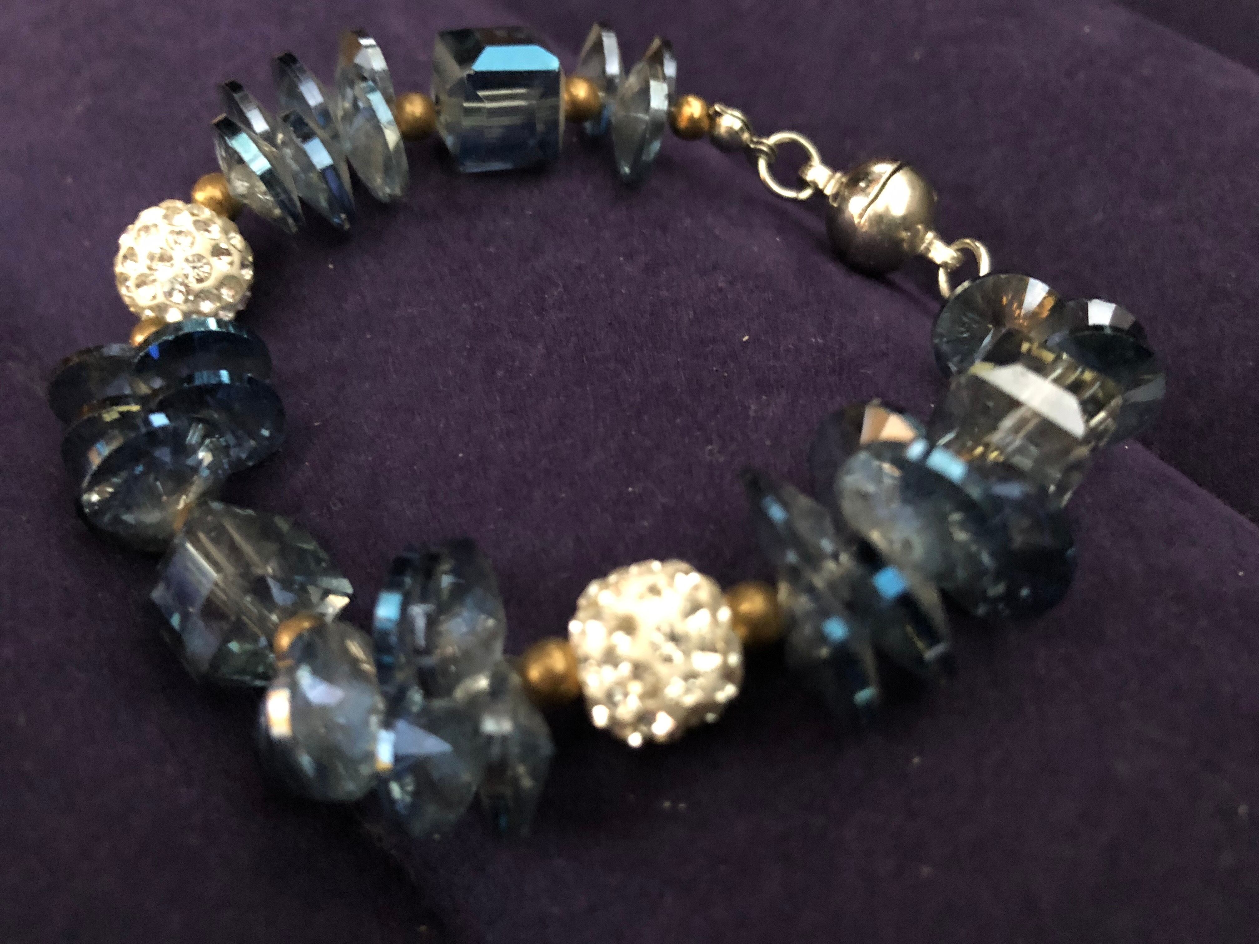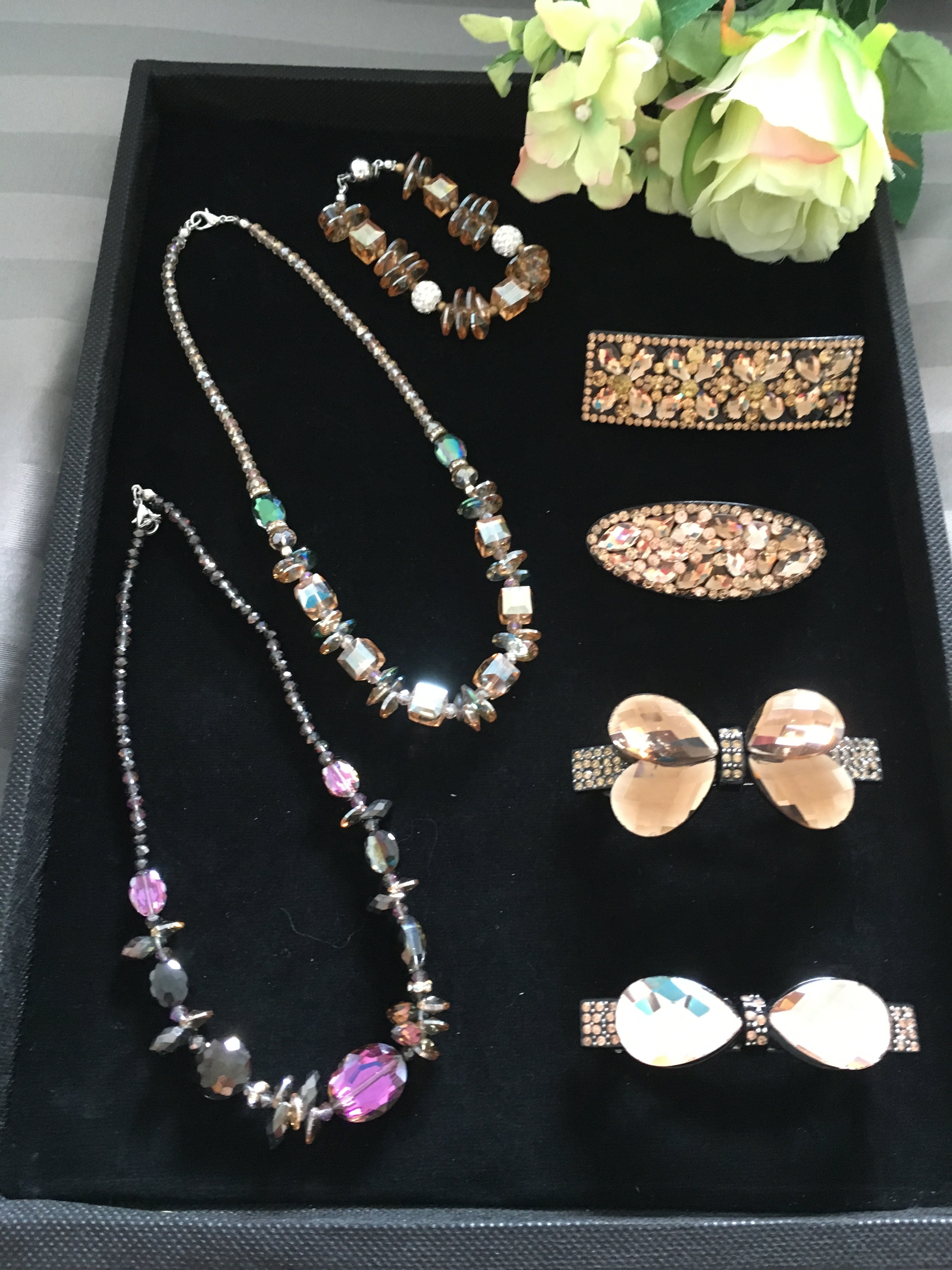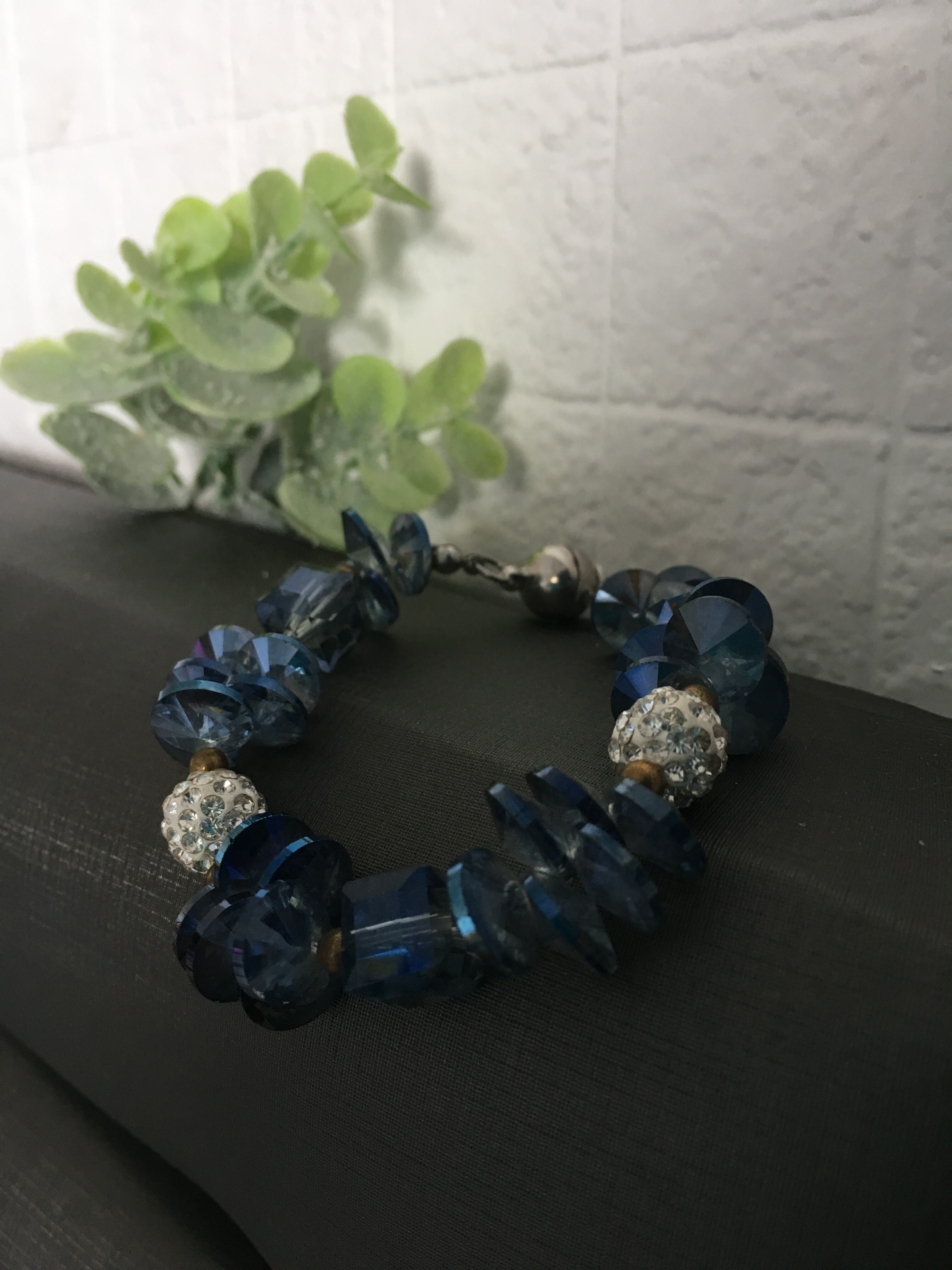 アンバーオーロラカラーの大粒ラインストーンがゴージャス!輝くラインストーンで手元を華やかに彩るブレスレット。 パーティーだけでなくカジュアルシーンでも活躍するアクセサリーです。豪華カラーラインストーンのブレスレット