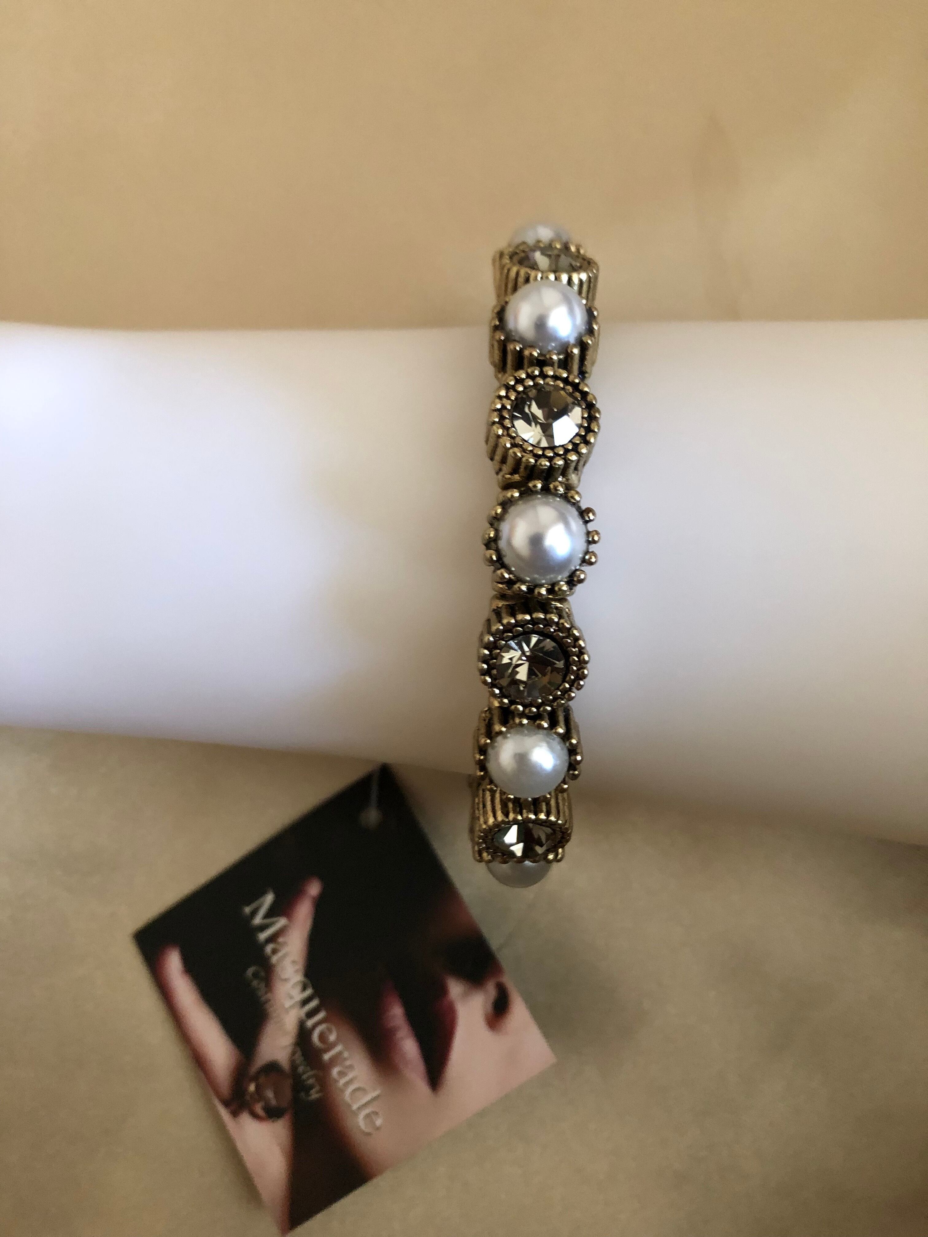【商品説明】 : 美しいアンティーク風ゴールドのニュアンスがかっこ良く、洗練された印象をプラスしてくれます。1点でしっかりとゴージャス感を演出する存在感!ラインストーンとシャイニーパールの輝きが大人の女性の魅力を最大限に引き出します。