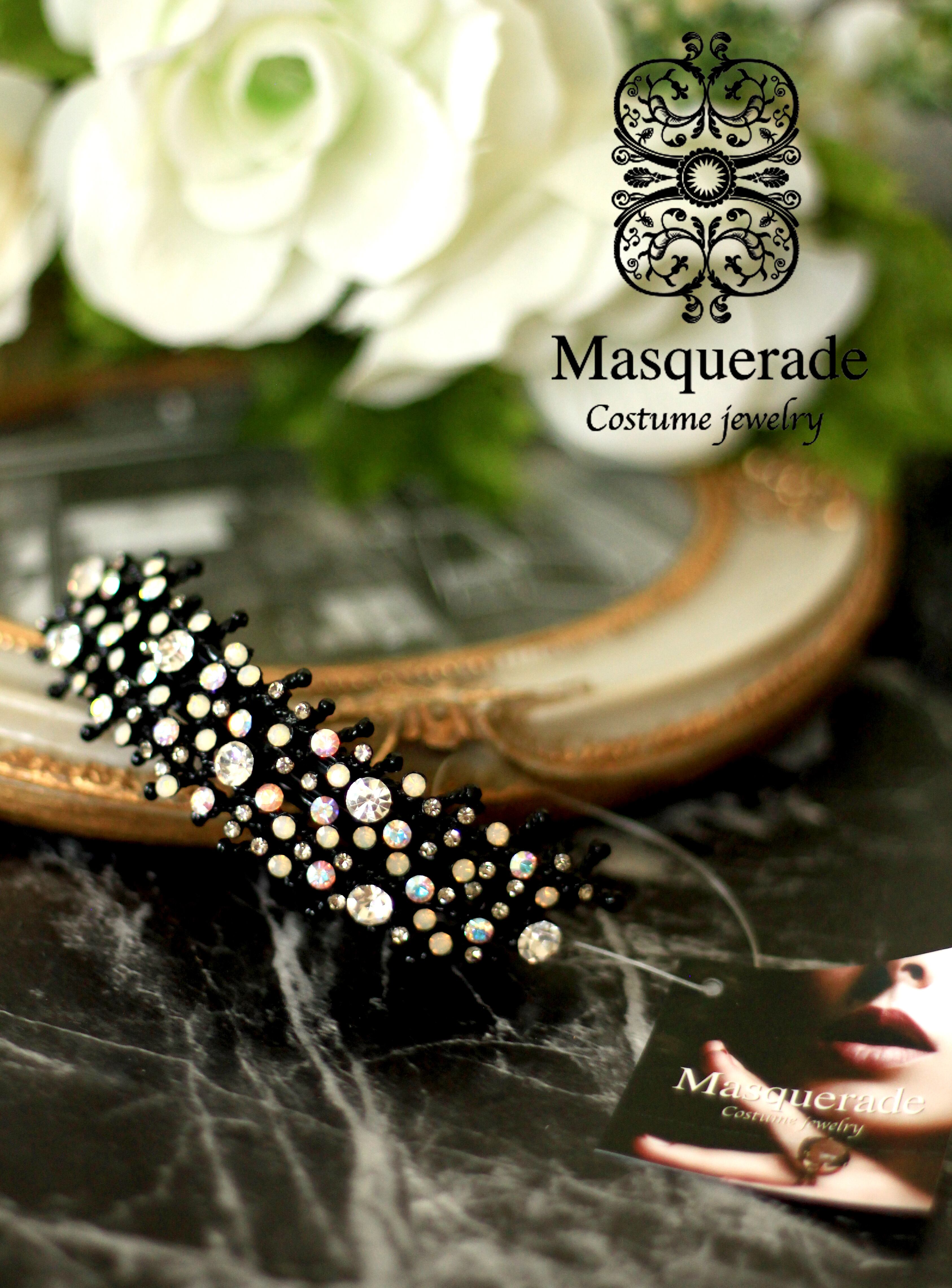 【素材】:合金、ライトストーン(ホワイト)、金具(ブラック)