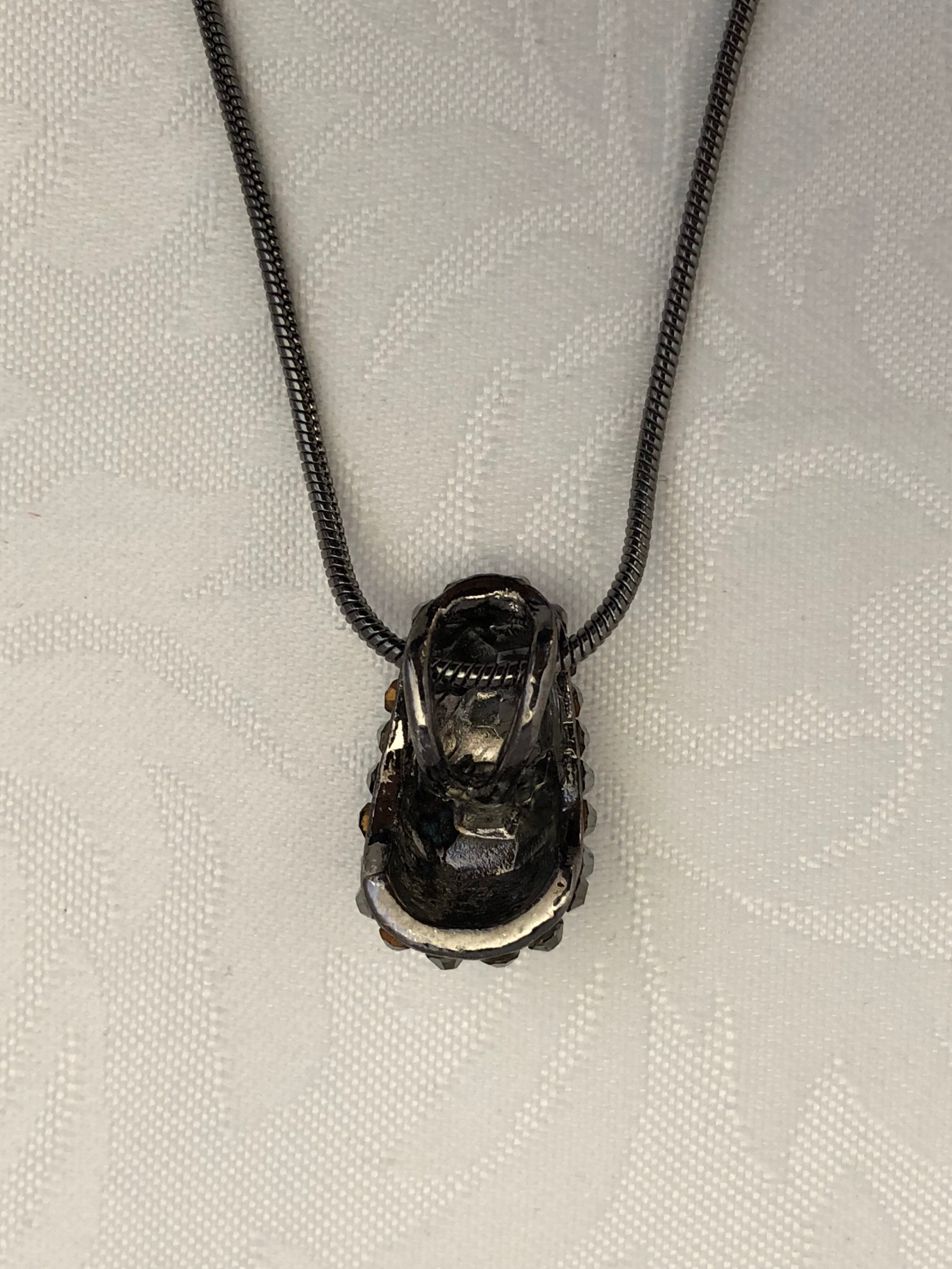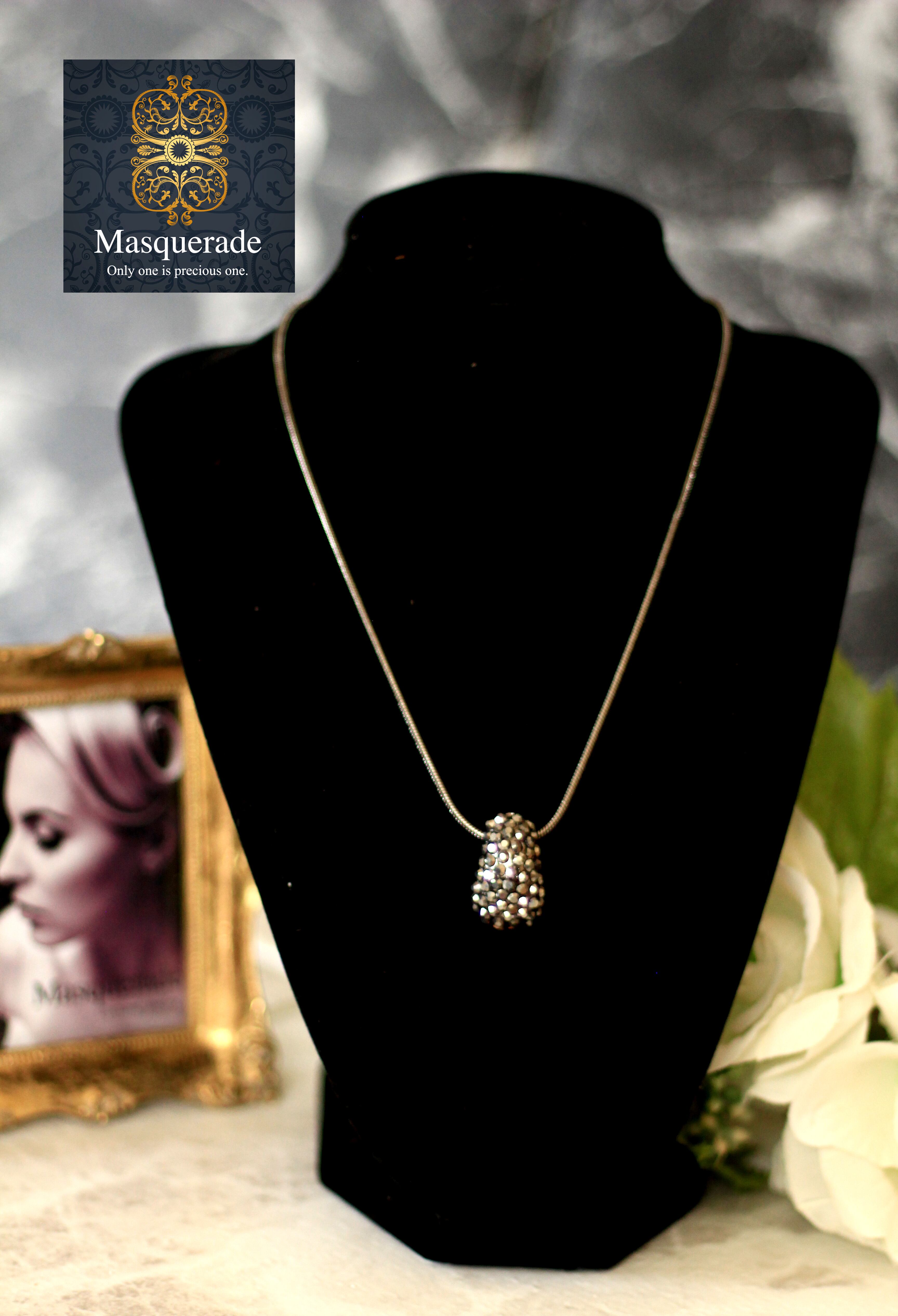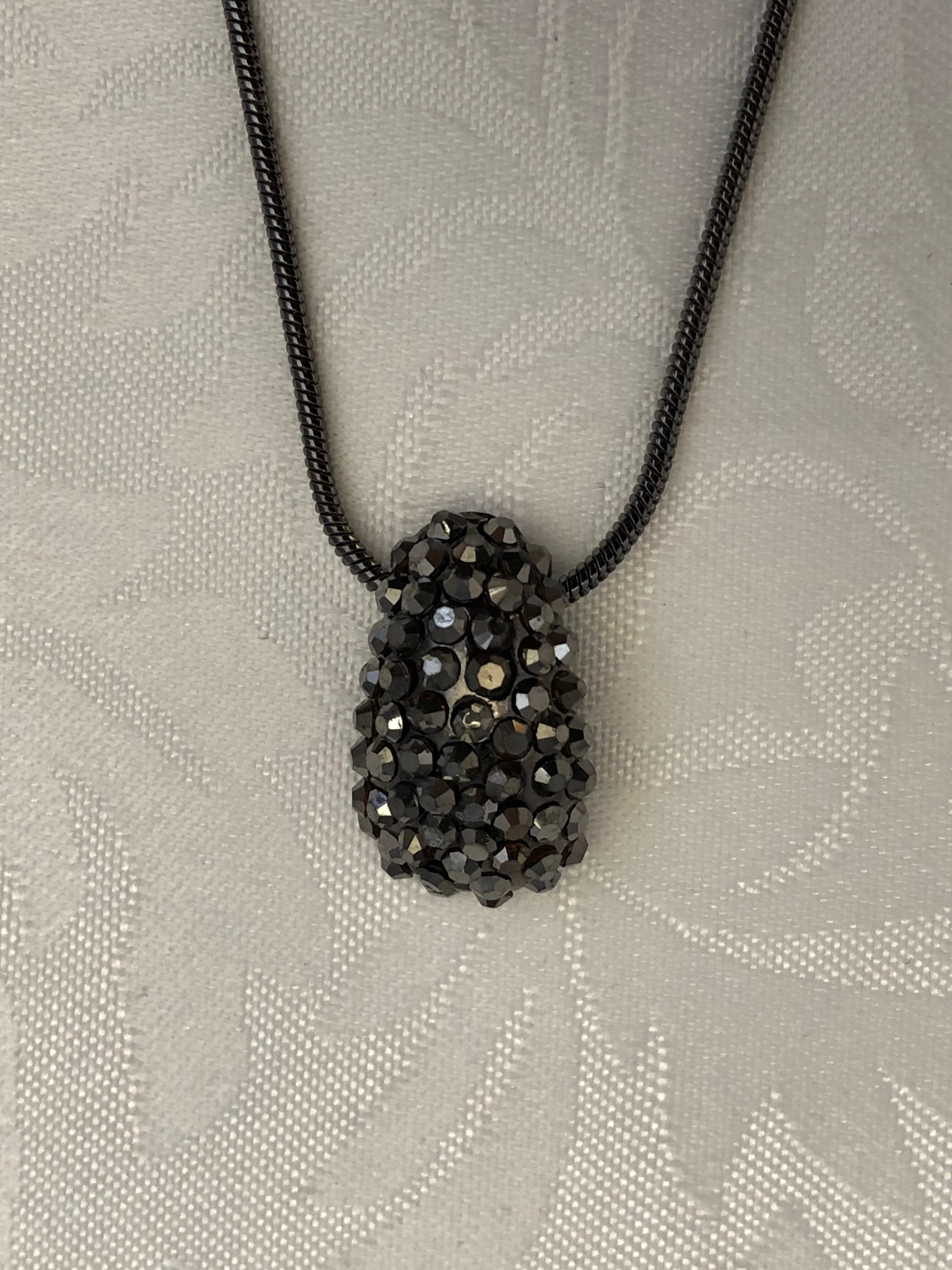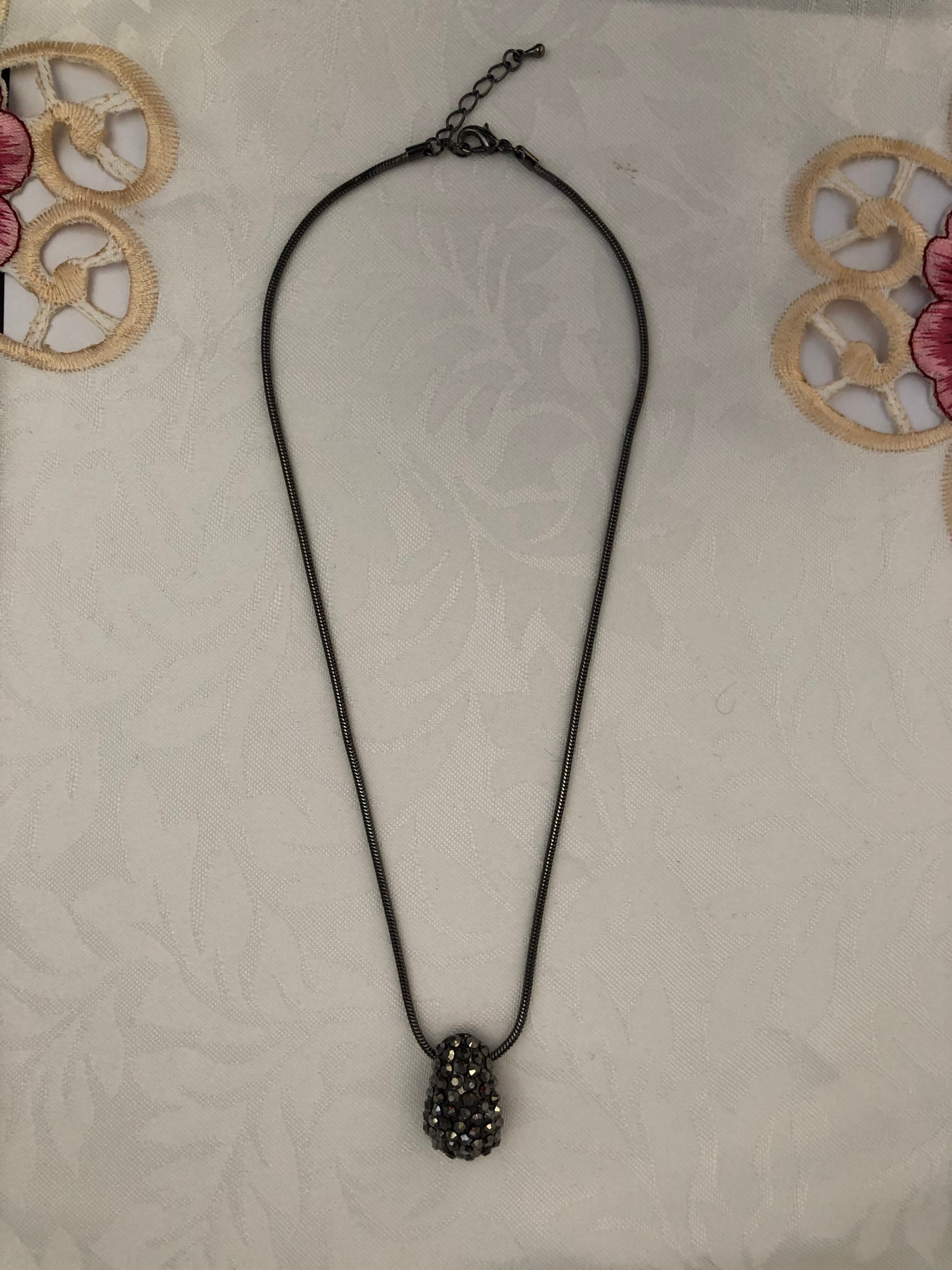 【商品説明】 : 上品なデザインが胸元にとても映えます!ビジューが輝くダークグレー色味でエレガントな大人デザインペンダントネックレス。シンプルコーデなどカジュアルにも。