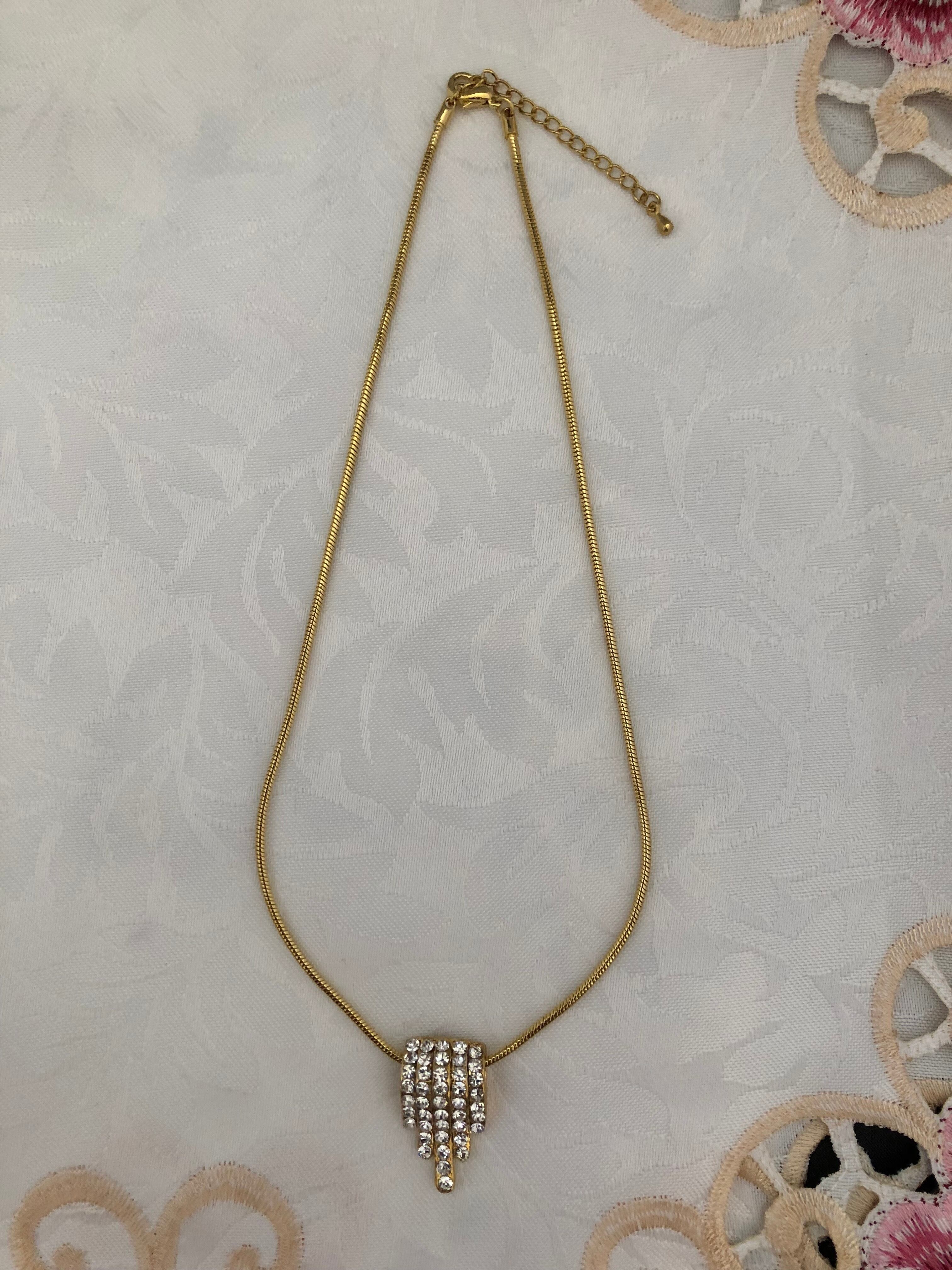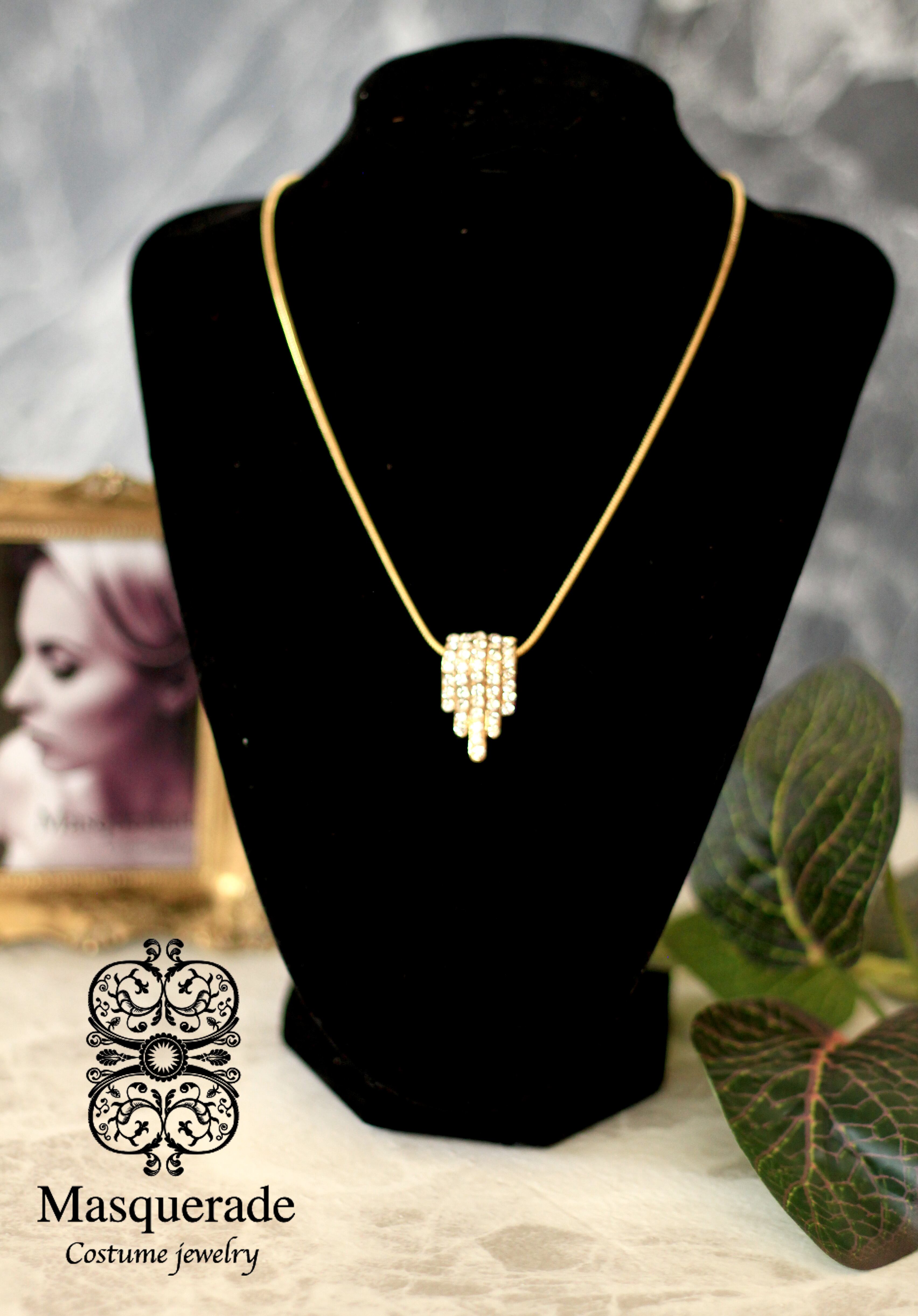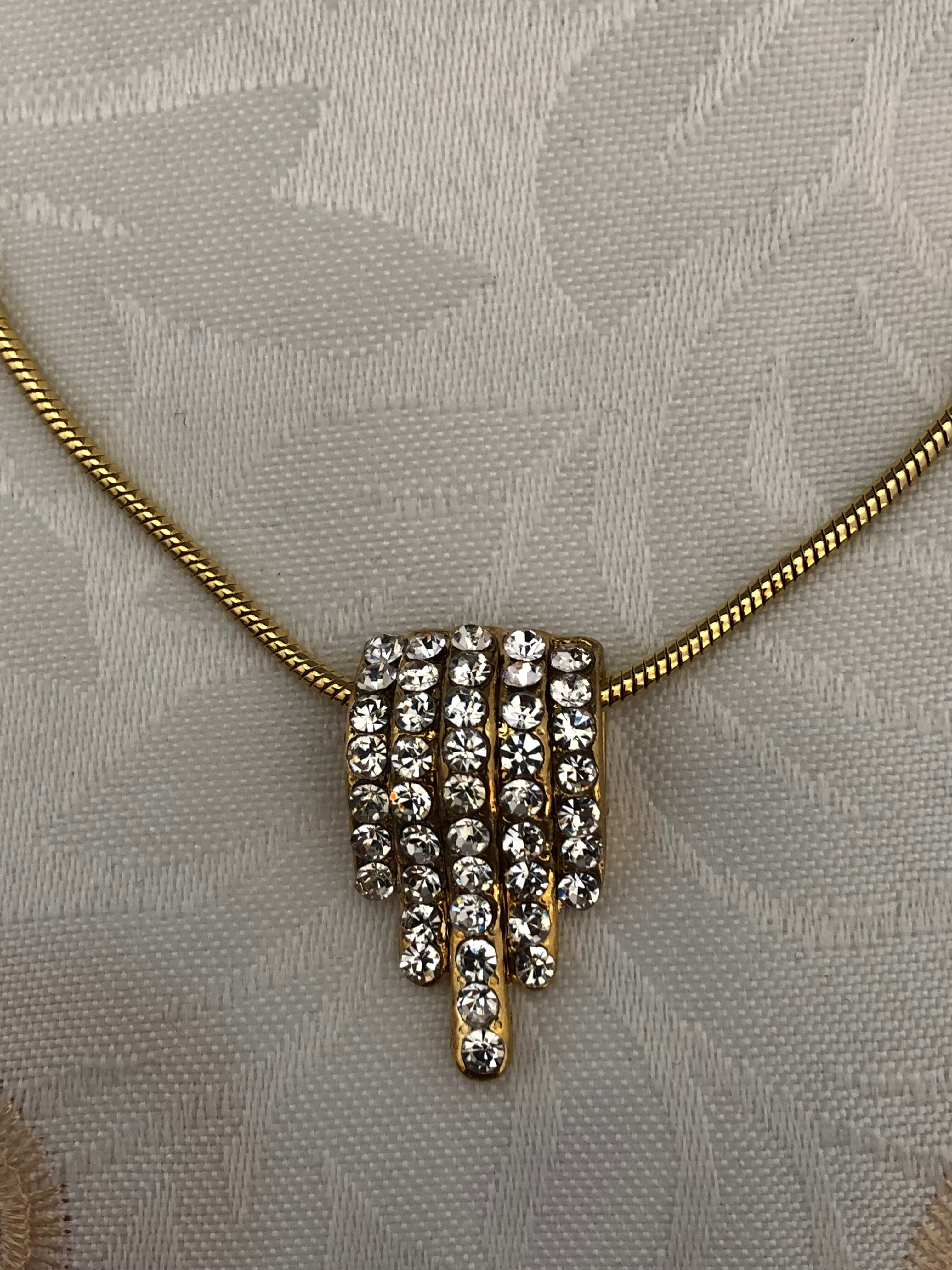 【商品説明】 : クリアカラーのビジューを使用した流れるようなモチーフのペンダント。コーディネートを選ばずお使いいただけます。洗練されたデザインなので、胸元が華やかになります。